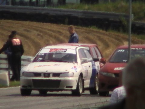 Jeg startede ud med at køre klassens hurtigste tid under tidtagning, så det var rigtig godt. Desværre måtte jeg så udgå i 1. indledende pga. defekt trækaksel, så nu skulle der køres 2 rigtig hurtige tider. I 2. indledende satte jeg 2. hurtigste tid i klassen, men i 3. indledende kom jeg til at rulle lidt på starten, det udløste en tyvstart, dvs. 3 sek. oveni min tid. Så skulle der køres TIL, det kunne også ses da jeg kom i ryttergården og mekanikerne måtte igang....ny sporstang, ny bærearm og lidt gaffatape, så var jeg kørende igen. Nå, men anstrengelserne gav mig 4. hurtigste totaltid i klassen og direkte i a-finalen, hvor jeg endte på 5. pladse