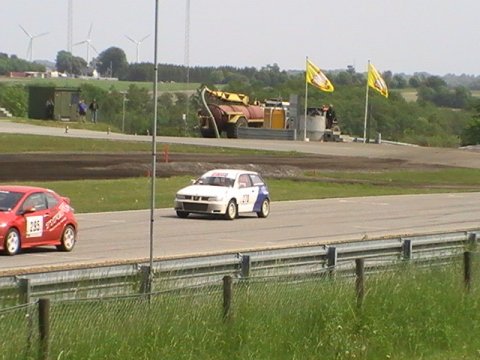 Træningen gik OK, banen viste sig at være både spændende og teknisk krævende at køre på. I tidstagning kom jeg til at lave en fejl, så jeg ramte autoværnet og fik ingen tid, så jeg måtte starte først i 1. indledende, her blev tiden ikke for god, såeee.....