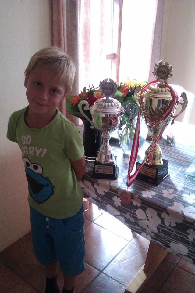 .....(se mere her) så det var en lidt skuffet dreng, der kom tilbage til ryttergården. I finalen lørdag skulle Niklas starte i 2. række bag de 4 andre. Han fik en god start og kom fra start som 4'er og han sluttede af på en 3. plads. Så der var en stor pokal med hjem