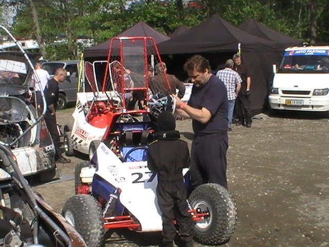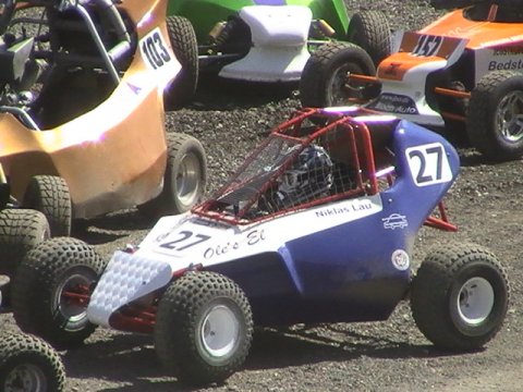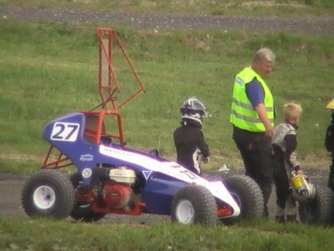 Ole var også temmelig spændt, det var første gang han skulle køre med den nye gearkasse, såee....Desværre var han temmelig uheldig og ødelægge ikke mindre end 3 hoveder på trækakslerne, så det betød udgået af 2 heat og a-finalen.