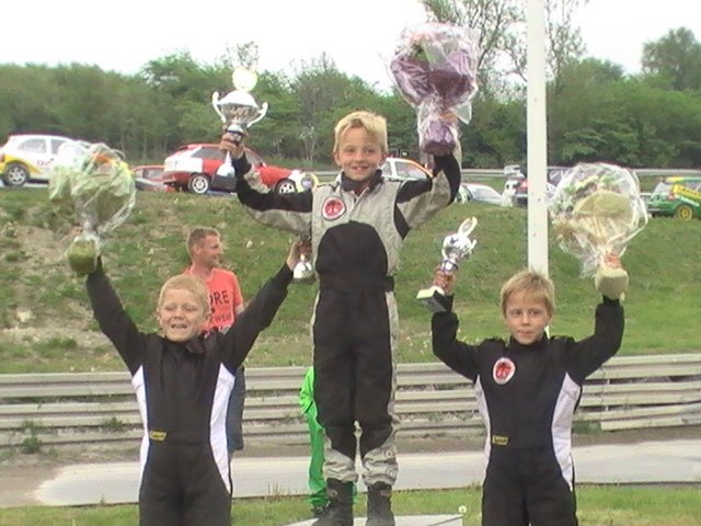 Så han var tilfreds. 2. & 3. heat og finale....ja, det gik lige sådan. Niklas fik kørt nogle rigtig fine heat, blev mere og mere dus med karten og kørte hurtigere og hurtigere. Så en rigtig god dag og start på racer-debutten til ham.